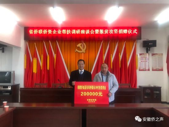 1月19日,安徽省僑聯黨組書記、主席李世蘊率領僑界青年企業家代表赴省僑聯扶貧聯系點舒城縣張母橋鎮長沖村開展愛心助學,調研鄉村振興工作。省僑聯黨組成員、辦公室主任畢清及有關部室負責同志,張母橋鎮、長沖村負責人參加活動。
