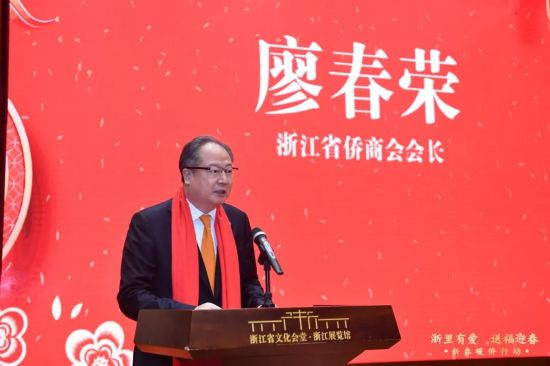 廖春榮在致辭中說,今天省僑辦、省僑聯、省文聯等單位在杭州聯合舉行新春暖僑活動,省領導親臨活動現場指導,充分體現了省委、省政府和浙江人民對廣大海外僑胞的親切關愛。這次活動內容豐富,平臺眾多,參與面廣,影響力大,對于凝聚僑心、匯聚僑力,共同參與建設“重要窗口”、爭創社會主義現代化先行省具有重大意義。