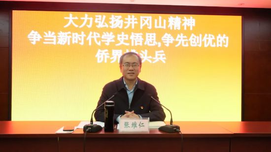 當(dāng)天,張維仁副主席以“大力弘揚(yáng)井岡山精神,爭當(dāng)新時代學(xué)史悟思、爭先創(chuàng)優(yōu)的僑界排頭兵”為主題,為大家進(jìn)行了一堂精彩的黨課輔導(dǎo)。在一個小時的黨課里,帶領(lǐng)大家從學(xué)習(xí)《習(xí)近平論中國共產(chǎn)黨歷史》中的“讓井岡山精神放射出新的時代光芒”文章為切入點(diǎn),結(jié)合個人在中國井岡山干部學(xué)院的學(xué)習(xí)考察經(jīng)歷,從井岡山根據(jù)地艱苦卓絕的鑄就過程,井岡山精神豐富深邃的實質(zhì)內(nèi)涵,井岡山革命先輩的錚錚風(fēng)骨,井岡山精神歷久彌新的實踐意義等四個方面,緊緊圍繞浙江省僑聯(lián)工作職能,深入淺出地闡述了省僑聯(lián)的初心和使命,內(nèi)容豐富、條理清晰、分析透徹。他說,面對新世情新國情新僑情,面對百年未有之大疫情和百年未有之中華民族偉大復(fù)興的大變局,我們要大力弘揚(yáng)新時代井岡山精神,堅定執(zhí)著追理想、實事求是闖新路、艱苦奮斗攻難關(guān)、依靠群眾求勝利,切實發(fā)揮僑聯(lián)組織的獨(dú)特優(yōu)勢與作用,不忘初心擔(dān)使命,唯實惟先促發(fā)展,執(zhí)政為民聚僑心,戒奢守廉樹新風(fēng),全力推進(jìn)“十四五”僑聯(lián)事業(yè)開好局、起好步,努力為忠實踐行“八八戰(zhàn)略”、奮力打造“重要窗口”,爭創(chuàng)“社會主義現(xiàn)代化先行省”作出僑界更大貢獻(xiàn)。