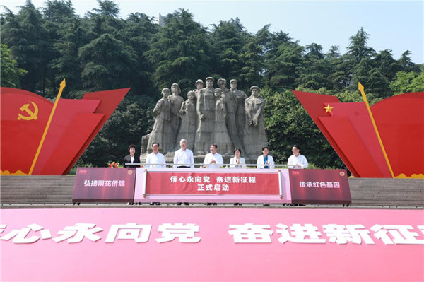 上午9時,動員大會正式開始。全體齊聲高唱《中華人民共和國國歌》,肅立默哀,100名少年兒童獻唱《我們是共產主義接班人》,敬獻花籃,歸僑僑眷代表朗誦詩歌《雨花僑魂》。隨后,中國僑聯兼職副主席、江蘇省僑聯黨組書記、主席周建農發出倡議,全國政協常委、江蘇省政協副主席、致公黨省委主委麻建國發表講話。出席活動的22名優秀僑界黨員、優秀僑聯工作者黨員代表獲頒南京市“僑界卓越貢獻者”證書。在振奮人心的啟動儀式中,“僑心永向黨 奮進新征程”倡議面向海內外僑胞正式發出。