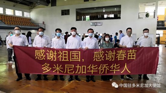 (旅多僑胞制作橫幅感謝祖國和“春苗行動”)