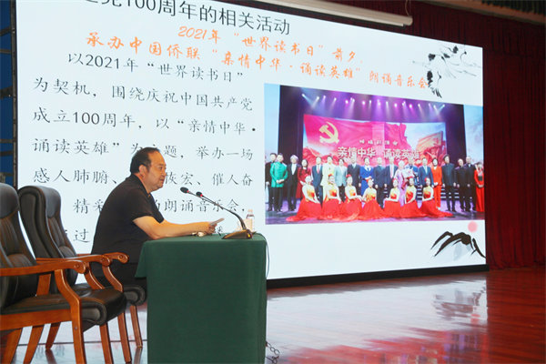 6月23日晚,為慶祝中國共產(chǎn)黨建黨100周年,由山東省僑聯(lián)主辦,日照市僑聯(lián)和山東外國語職業(yè)技術(shù)大學(xué)共同承辦的《永遠(yuǎn)跟黨走——百年同心看今朝》全省僑聯(lián)系統(tǒng)慶祝中國共產(chǎn)黨成立100周年晚會(huì)在山東外國語職業(yè)技術(shù)大學(xué)報(bào)告廳舉辦。演出分為“開天辟地、改天換地、翻天覆地、驚天動(dòng)地”四個(gè)篇章,通過合唱、歌舞、器樂演奏、情景朗誦、戲曲聯(lián)唱等節(jié)目,深情展示了中國共產(chǎn)黨帶領(lǐng)廣大人民群眾建設(shè)新中國的百年歷程,謳歌了各族人民緊密團(tuán)結(jié)在黨的周圍,攜手奮進(jìn)建設(shè)祖國的動(dòng)人篇章。李興鈺主席、劉奇部長,日照市委市政府領(lǐng)導(dǎo),參加全省僑聯(lián)系統(tǒng)干部培訓(xùn)班的學(xué)員和山東外國語職業(yè)技術(shù)大學(xué)的師生們共800余人觀看出了演出。