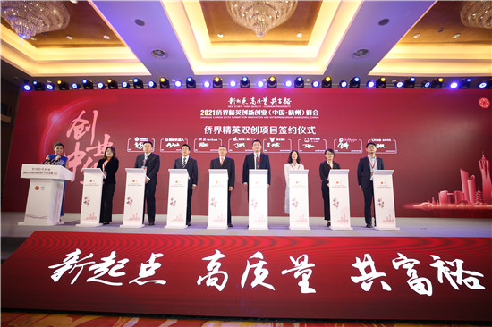 開幕式上,中國僑聯(lián)副秘書長、經(jīng)科部部長趙紅英為杭州高新區(qū)(濱江)海外高層次人才創(chuàng)新創(chuàng)業(yè)基地授“中國僑聯(lián)新僑創(chuàng)新創(chuàng)業(yè)基地”牌子;浙江省僑聯(lián)為天和高科產(chǎn)業(yè)園等5家單位授予“浙江省僑界創(chuàng)新創(chuàng)業(yè)基地”;杭州市僑聯(lián)與浙江大學(xué)僑聯(lián)、校友會(huì),濱江區(qū)政府與浙江時(shí)邁藥業(yè)等雙創(chuàng)項(xiàng)目,中國銀行杭州分行等金融機(jī)構(gòu)與相關(guān)僑界企業(yè)分別舉行簽約儀式;杭州市高新區(qū)(濱江)作創(chuàng)投環(huán)境推介,著名財(cái)經(jīng)作家吳曉波作主旨演講。