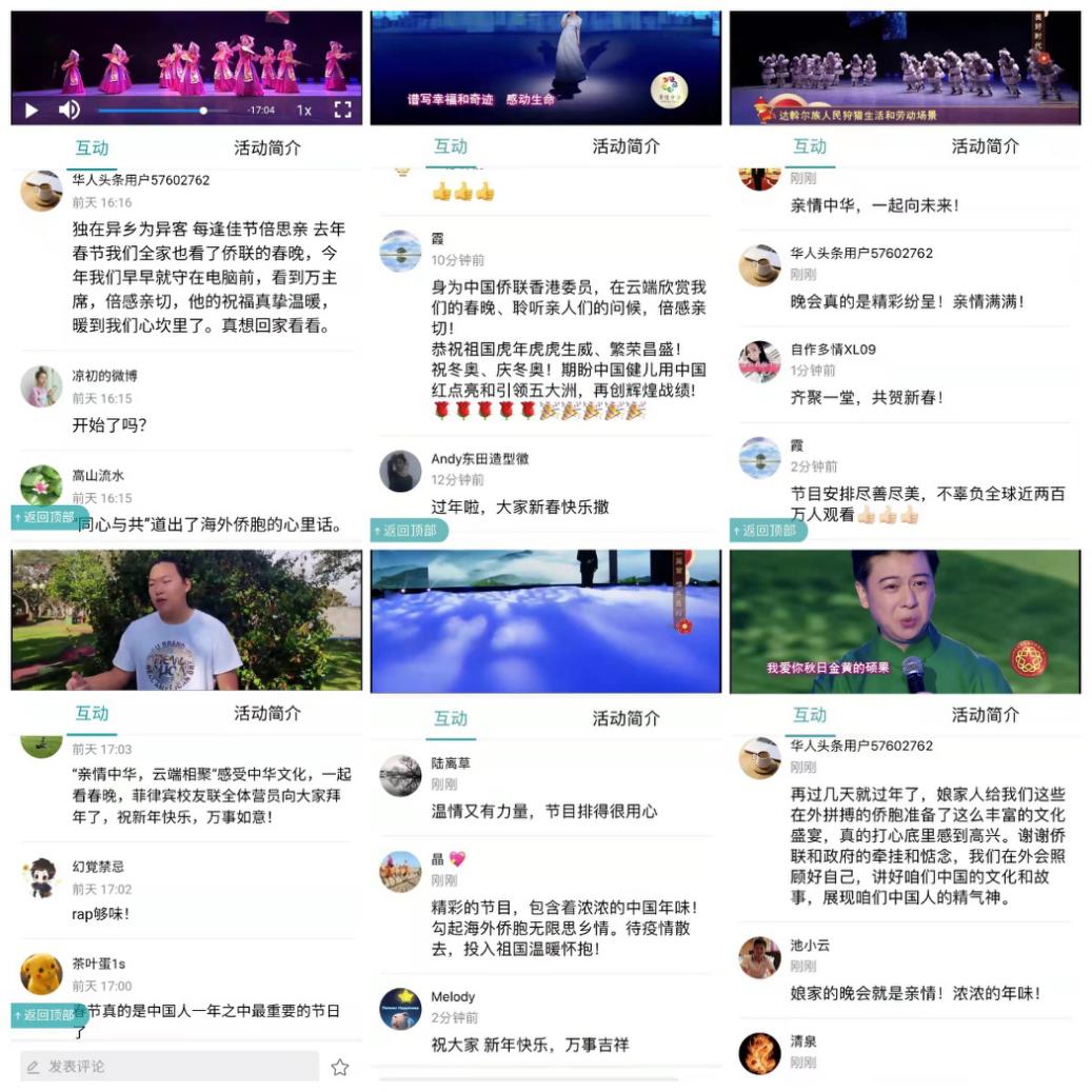 德國香草山中文學校校長涂麗萍:晚會采用“云”視頻技術,“云傳播”“云互動”,融通大屏小屏,為“就地過年”的海外華僑華人送上情意濃濃、祝福滿滿的文化盛宴。在不能與家人團圓時,倍感來自祖籍國的溫暖,讓身在異鄉的我不再孤單。