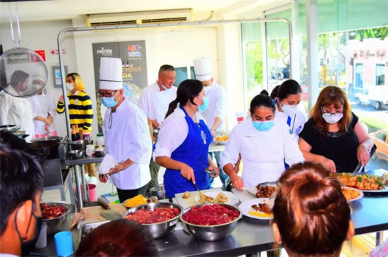 主廚徐先生和其他幾位名廚課后還接受了當(dāng)?shù)孛襟w的采訪,在采訪中他們表示,這是梅里達(dá)第二次舉辦美食節(jié)活動,但是他們作為受邀來賓,是第一次來梅里達(dá)參加此類活動,能有機(jī)會向墨西哥民眾展示中國美食文化,他們感到很榮幸。