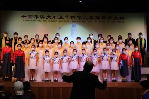 拜祖大典進行了獅舞迎拜、敬獻花籃、奠帛進饌、行施拜禮、恭讀拜文等議程,表達澳大利亞華僑華人對先祖的感恩和敬仰。期間還有各界華人華僑帶來的獨具中華文化特色的歌舞表演,如文化歌曲《梅花有一個夢》、合唱《黃帝頌》和中國舞等。嘉賓還在現(xiàn)場設(shè)置的祈福樹上懸掛祈福牌,為中華民族祈福,并祈愿全球民眾早日戰(zhàn)勝疫情。(王佳一)
