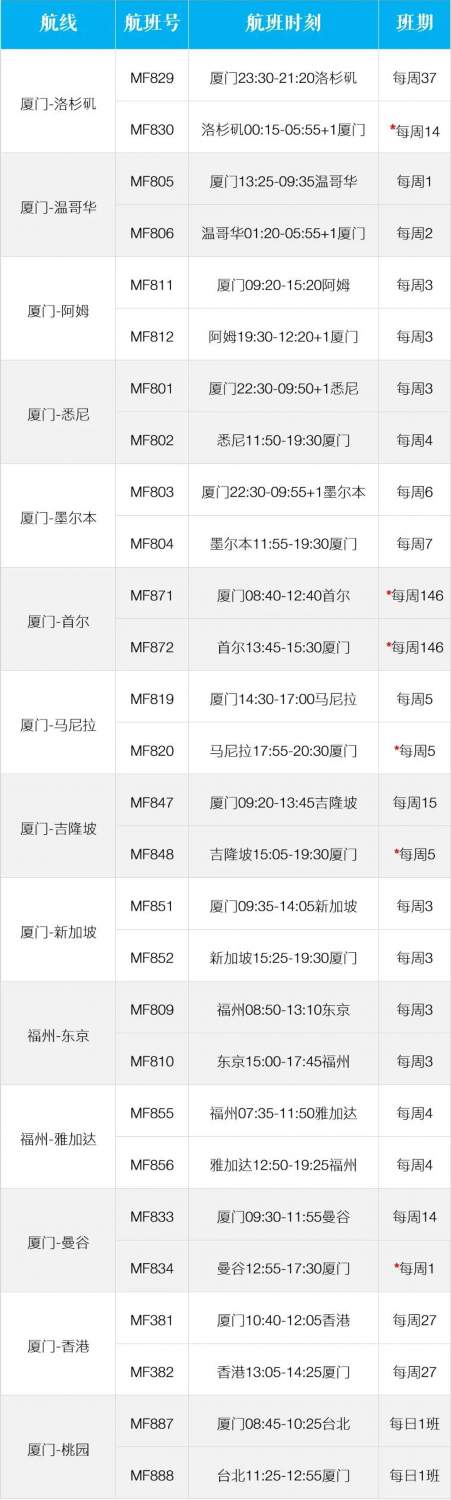 近日,廈門航空公司發布5月份航班國際/地區航班計劃。