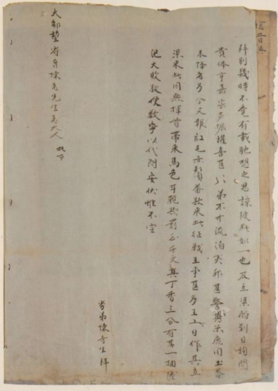 大都望(?)省吾陳老先生老大人 執事
