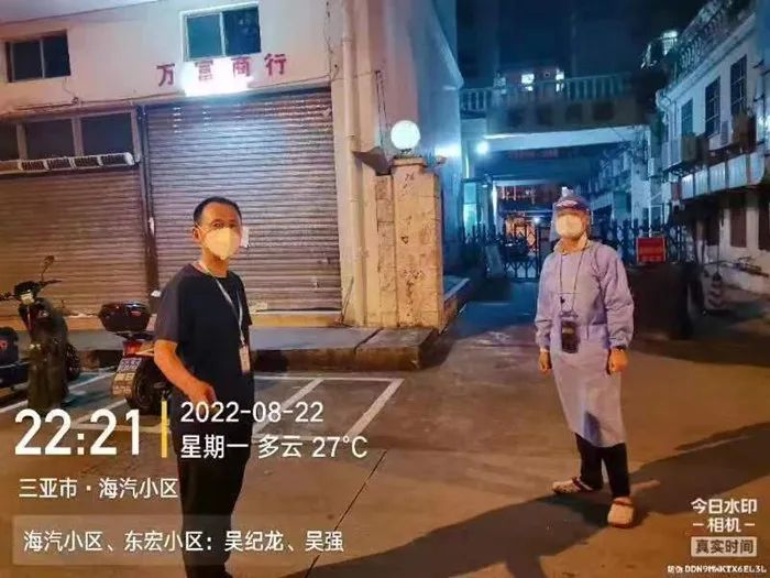 海南省僑聯志愿者吳紀龍、吳強夜間在海汽小區巡樓