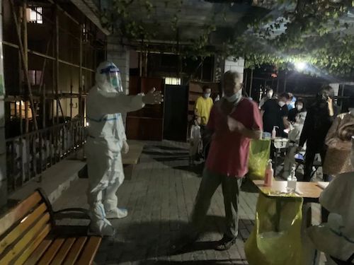 大連市僑聯組織機關黨員和弘僑義工站800多名義工,下沉到社區抗疫一線,配合開展卡口檢查、核酸檢測、消毒消殺等工作。