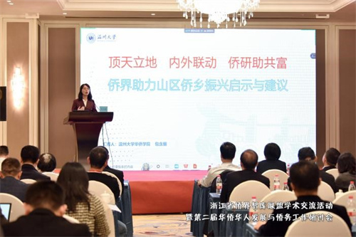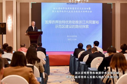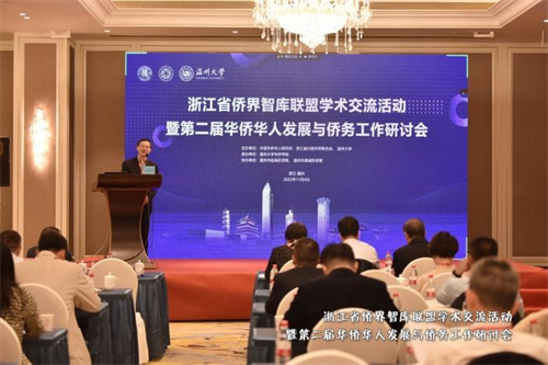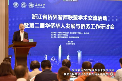 11月4日,由中國華僑華人研究所、浙江省歸國華僑聯合會、溫州大學主辦,溫州大學華僑學院承辦,溫州市甌海區僑聯、鹿城區僑聯協辦的浙江省僑界智庫聯盟學術交流活動暨第二屆華僑華人發展與僑務工作研討會于溫州順利召開。