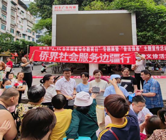 醫務人員為僑界群眾量血壓、查病情、開藥方;致公黨干部為僑界群眾找藥送藥;州縣僑聯干部開展涉僑法律法規講解,并向群眾發放普法宣傳手冊及宣傳單。整個服務活動場景熱情與和諧、親切與融洽交織在一起,體現了為僑服務宗旨,也增進了干群關系與感情。