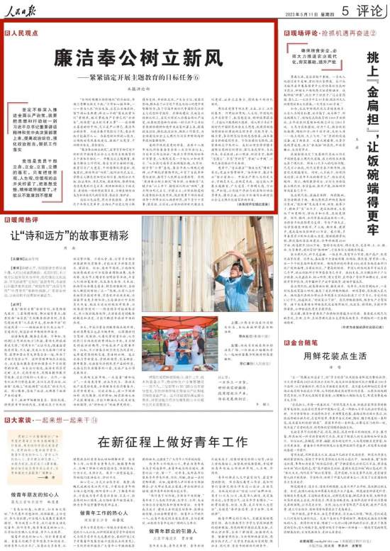 當前,全黨正在開展學習貫徹習近平新時代中國特色社會主義思想主題教育。習近平總書記從新時代新征程黨和國家事業發展全局的戰略高度,深刻闡述開展主題教育的重大意義和目標要求,明確提出了開展主題教育的根本任務和具體要達到的五個方面目標。人民日報推出系列評論,與讀者一起深入探討,貫徹落實。