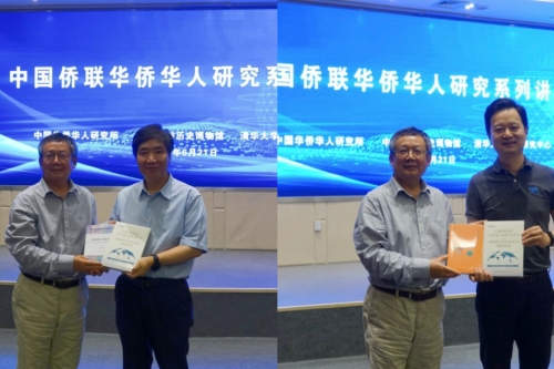講座結束后,清華大學華商研究中心主任龍登高教授分別向中國華僑華人研究所、中國華僑歷史博物館贈送了相關書籍。