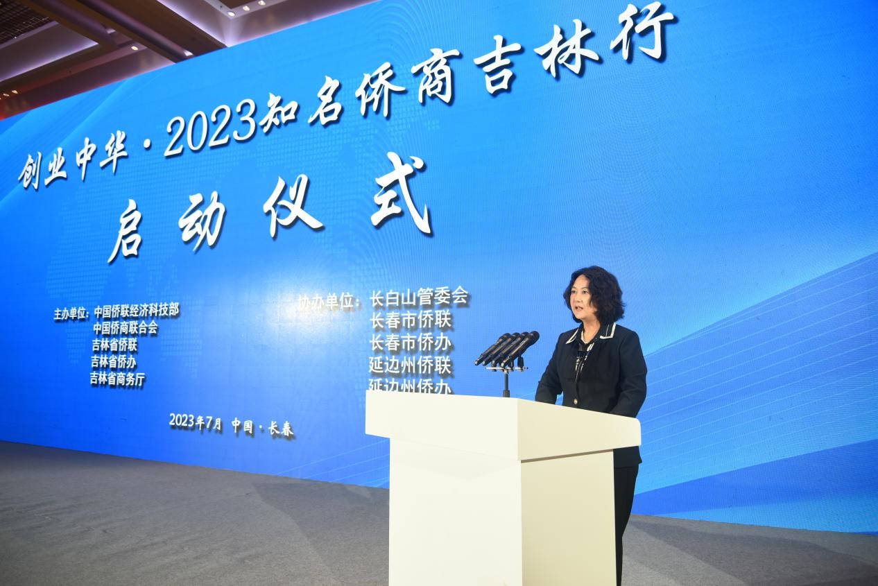 7月26日,創業中華·2023知名僑商吉林行活動在吉林省長春市啟動。中國僑聯副秘書長、經濟科技部部長趙紅英,吉林省僑聯黨組書記、統戰部副部長鮑九生出席啟動儀式并致辭,吉林省僑聯主席丁兆麗主持。吉林省委統戰部副部長、省僑辦主任馮慶忠,省商務廳一級巡視員王明奎和省市相關部門及僑商代表230余人參加活動。
