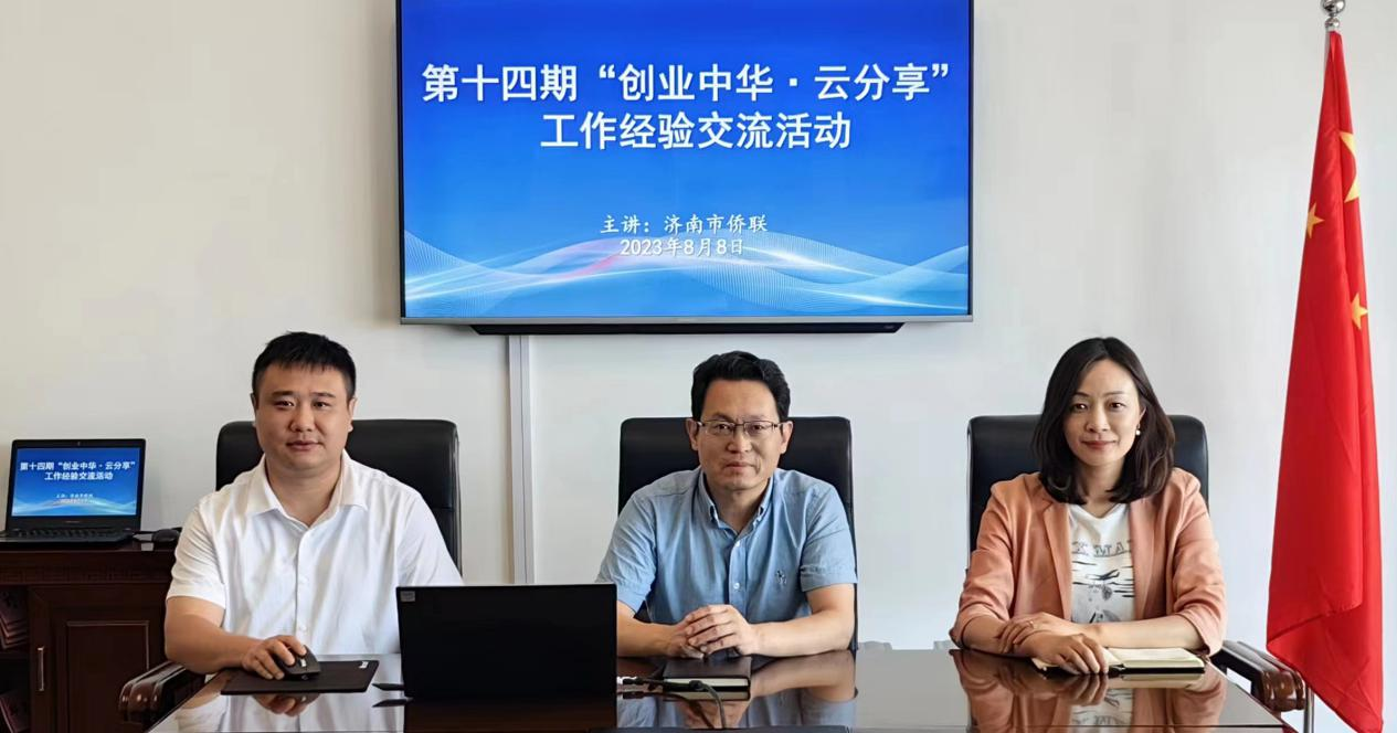 8月8日上午,中國僑聯(lián)經(jīng)科部舉辦第十四期“創(chuàng)業(yè)中華·云分享”工作交流活動,濟南市僑聯(lián)作專題分享。中國僑聯(lián)副秘書長、經(jīng)濟科技部部長趙紅英,經(jīng)濟科技部副部長祁德貴,經(jīng)濟科技部二級巡視員徐偉,濟南市僑聯(lián)黨組書記、主席米文芃,濟南市僑聯(lián)黨組成員、副主席孫洪成,全國各省級僑聯(lián)經(jīng)科部長、地市級僑聯(lián)分管經(jīng)科工作副主席等1600余人在線收看。
