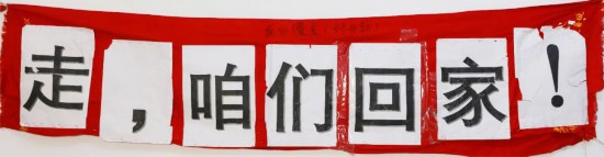 日本華僑劉丹蕻及其公司車隊成員接載“鉆石公主”號港澳乘客至機場搭乘包機回中國香港時所用“走,咱們回家!”橫幅