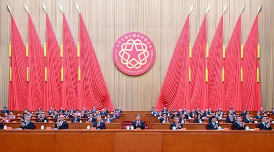人民大會堂大禮堂氣氛莊重而熱烈。主席臺上方懸掛著“第十一次全國歸僑僑眷代表大會”的會標,后幕正中是象征著五大洲僑胞心向祖國的中國僑聯會徽,10面紅旗分列兩側。二樓眺臺懸掛著“以習近平新時代中國特色社會主義思想為指導,全面貫徹黨的二十大精神,團結凝聚廣大歸僑僑眷和海外僑胞為全面建設社會主義現代化國家、全面推進中華民族偉大復興而奮斗!”巨型橫幅。來自全國各地的近1200名歸僑僑眷代表和來自100多個國家的近600名海外僑胞特邀嘉賓歡聚一堂。