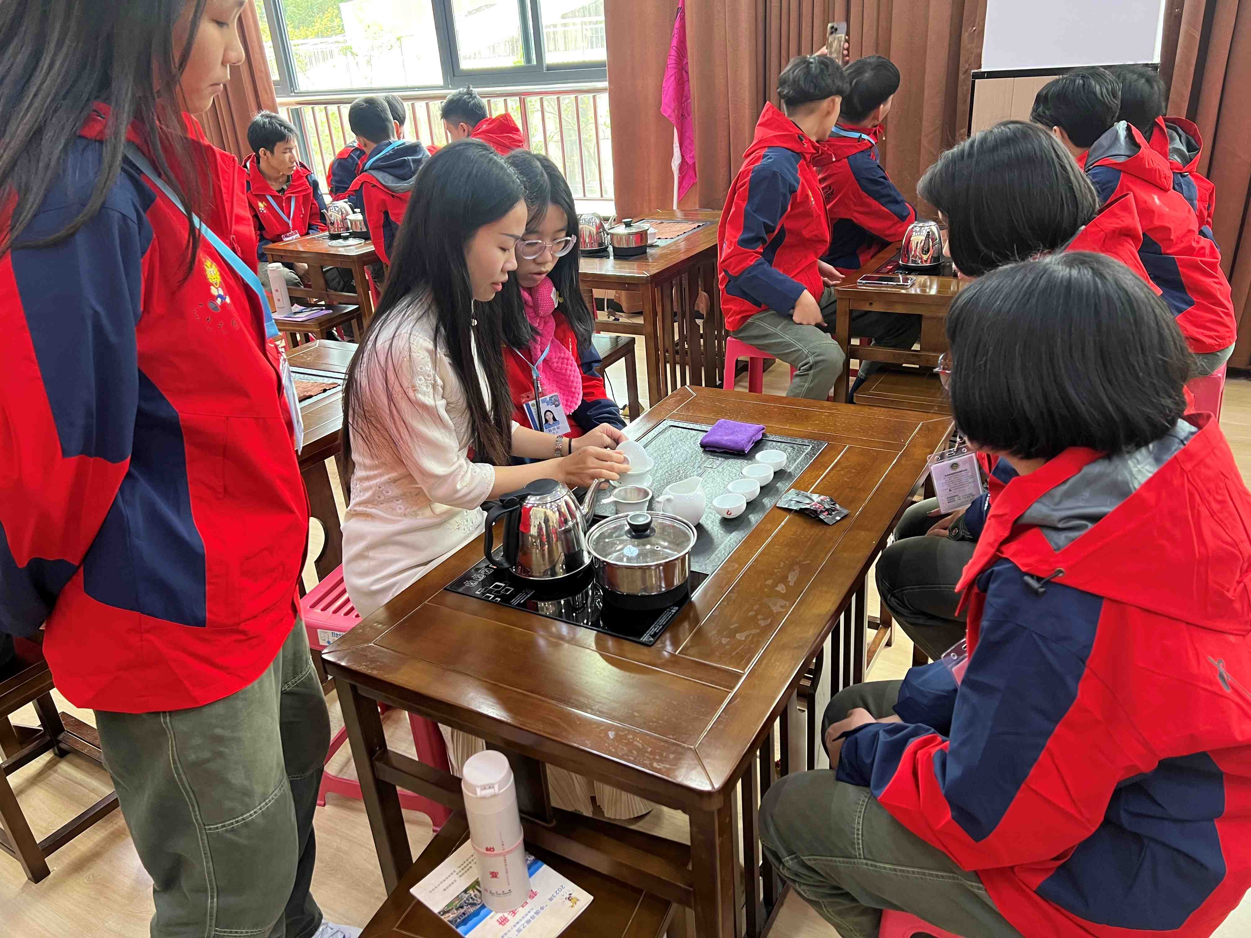 在華僑職校的校園里,冬令營學員在23級旅游專業學生一對一的陪伴下,同吃、同出行、同活動,一起朗誦《送杜少府之任蜀州》《望月懷遠》《再別康橋》《面朝大海 春暖花開》等中國經典送別詩詞,動手制作精美的藤編手工藝品、美味的餃子和湯圓,體驗溪禾山茶文化,參觀茶文化博物館、安溪文廟等名勝古跡。這些活動讓馬來西亞安溪籍青少年親身體驗中華優秀傳統文化和安溪的茶文化,感受祖先曾經歷過的中國民間風俗,領略中華文化的博大精深。