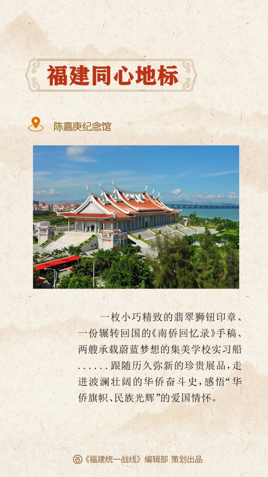 緬懷華僑旗幟,賡續精神血脈,時至今日,陳嘉庚愛國愛鄉、傾資興學、服務社會、造福人類的事跡,仍感動著每一位走進紀念館的觀眾,激勵一代又一代的有志之士,為共圓民族復興之夢而不懈奮斗。陳嘉庚紀念館先后獲評全國愛國主義教育示范基地、中國華僑國際文化交流基地、全國民營經濟人士理想信念教育基地等榮譽稱號,自開館以來,累計參觀的人數超1000萬人次。