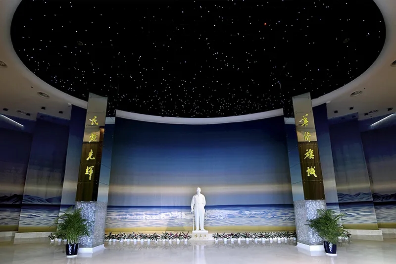 步入陳嘉庚紀念館的序廳,抬頭便可看到一片星空,這片星空是根據1874年陳嘉庚出生時的星空圖仿制而成。那顆紅色的星星,是被命名為“陳嘉庚星”的2963號小行星,象征著陳嘉庚的偉大業績和崇高精神如恒星般,與天地共存,閃耀無盡光輝。
