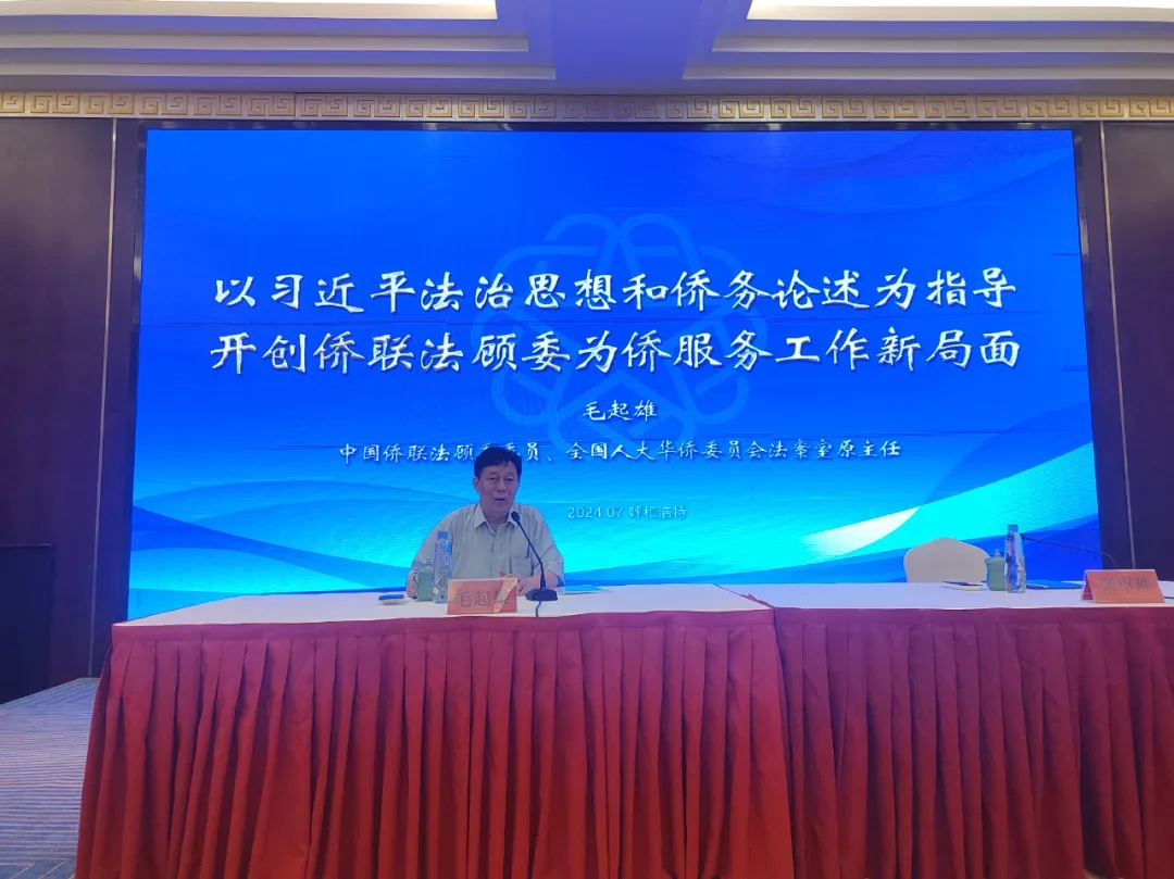 本次會議還特邀中國僑聯法顧委委員毛起雄為自治區僑聯法顧委委員、各盟市僑聯干部進行了專題輔導,以《以習近平法治思想和僑務論述為指導 開創僑聯法顧委為僑服務工作新局面》為題,圍繞僑情、涉僑法律法規基本情況、如何依法開展維護僑益工作等方面進行了深入解讀。