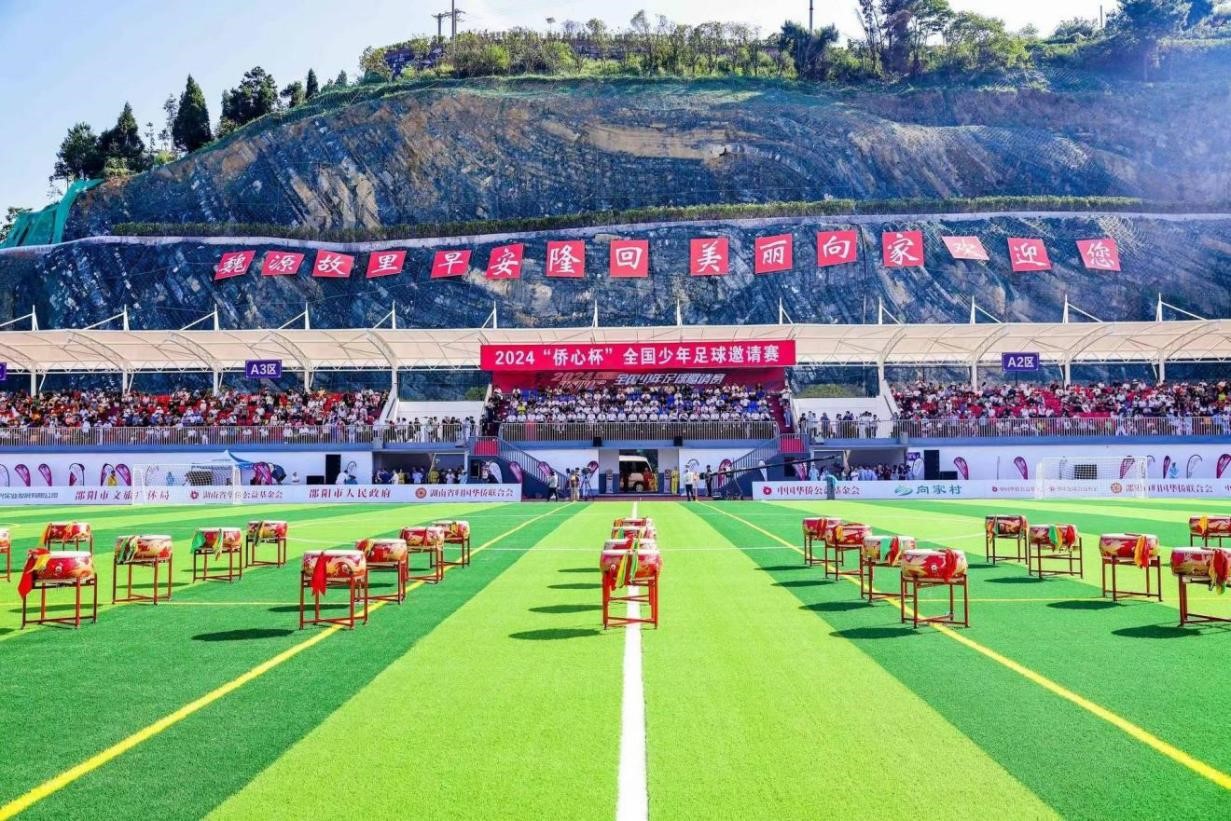 7月10日,由中國僑聯指導,中國華僑公益基金會、湖南省僑聯、省體育局、邵陽市人民政府主辦的2024年“僑心杯”全國少年足球邀請賽開幕式在湖南省邵陽市隆回縣向家村隆重舉行。中國僑聯顧問、原副主席康曉萍出席開幕式并致開幕詞,隆回縣委書記劉厚見致歡迎詞。中國華僑公益基金會理事長尹媛媛,湖南省僑聯黨組書記、副主席孫民生,安徽省僑聯黨組書記、主席李世蘊,湖南省體育局黨組成員、副局長羅躍龍,山西省僑聯黨組成員、副主席閆芳,邵陽市市委書記嚴華等出席開幕式。有關省(市)地方政府、僑聯組織、體育局代表及裁判員、教練員、運動員、特邀嘉賓及媒體等3000余人參加活動。