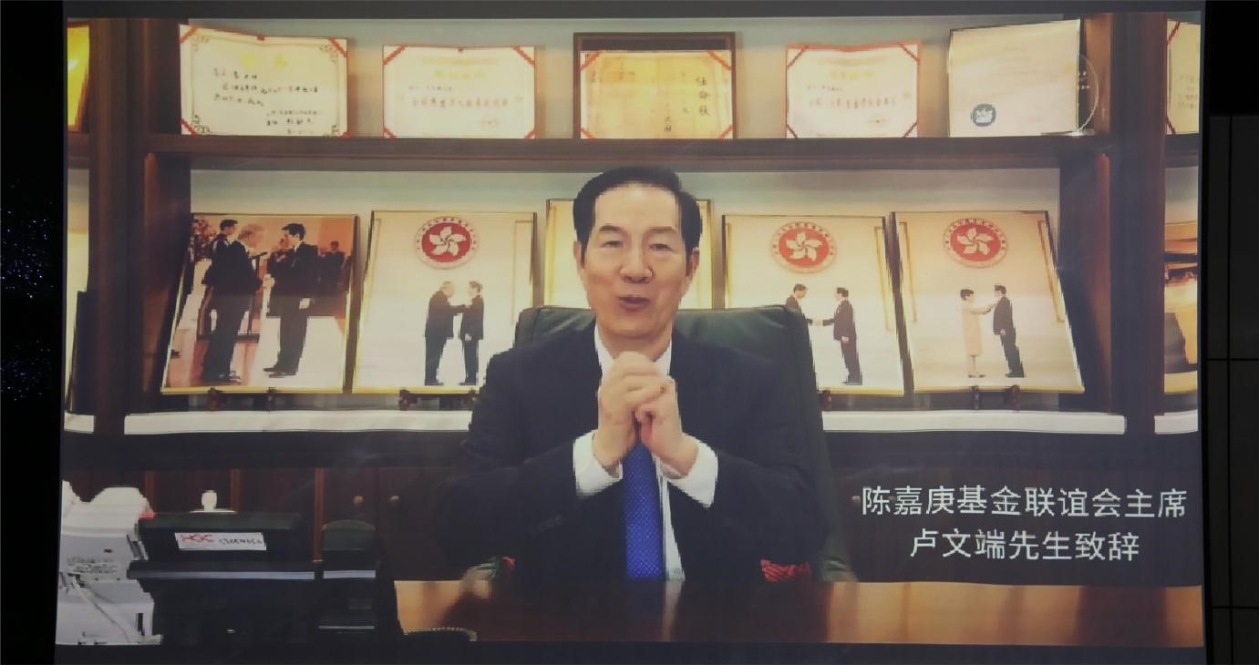 在頒獎典禮上,陳嘉庚基金聯誼會主席盧文端以錄影的方式代表陳嘉庚基金聯誼會對參與國家和地區的當地政府以及社會各界的積極推動和支持表示衷心感謝,并對各獲獎學校和參團師生表達熱烈祝賀。他提到今年正值陳嘉庚先生誕辰150周年、南僑機工回國抗戰85周年,同時也是中馬建交50周年大慶,陳嘉庚基金聯誼會在這非常有紀念意義的一年里,舉辦“重走嘉庚路”馬來西亞游學團,目的是讓比賽中獲獎的學生“讀萬卷書,行萬里路”,透過“比賽+游學”的獨特活動形式,探尋及了解以陳嘉庚先生為代表的華人先輩在南洋拼搏奮斗的故事,以及他們在當地的成就和重要的影響力,以此鼓勵青年一代在日常生活中發揚“嘉庚精神”,深刻認識世界發展大勢,增強中華民族自豪感和自信心。