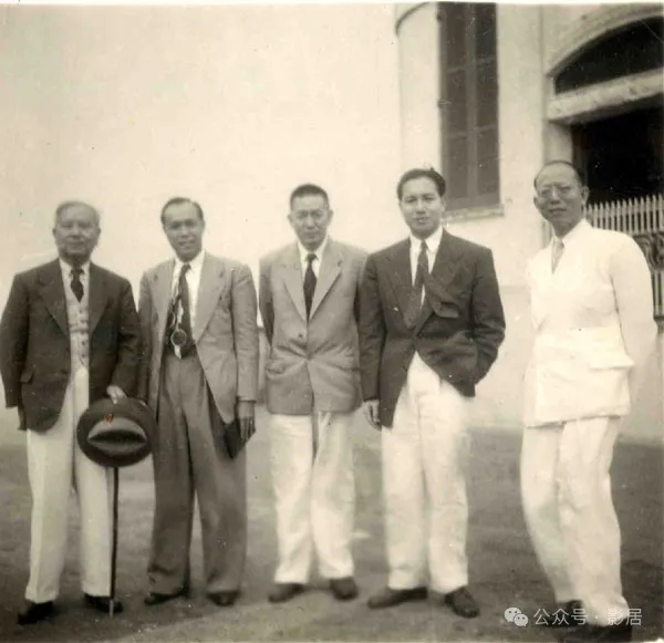 1949年5月5日由新加坡啟程返回祖國,圖為抵達香港時與莊明理、黃長水、陳共存、張楚鳴合影