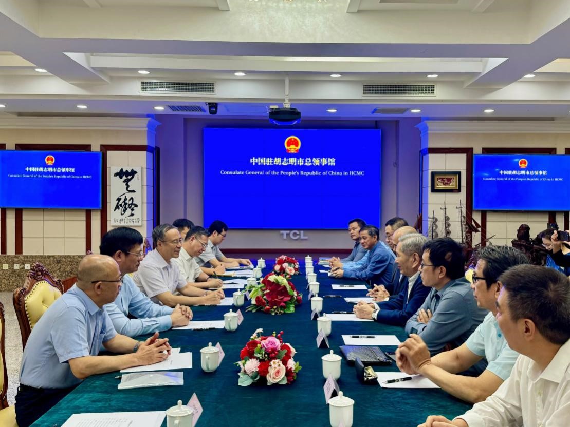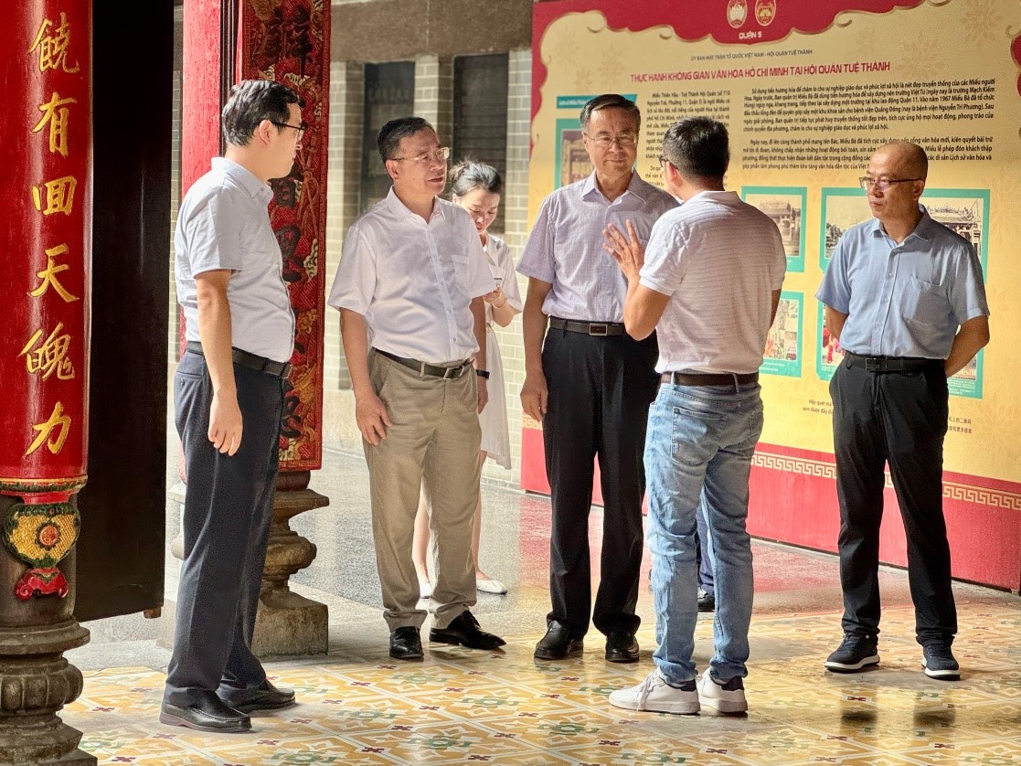 在胡志明市,萬立駿集體看望當地華僑代表,走訪豪士坊、穗城會館、義安會館,與大家共敘鄉情、共話發展。他表示,旅越華僑華人艱苦奮斗、落地生根,在實現自身事業發展的同時積極融入和回饋當地社會,為深化中越各領域交流合作作出積極貢獻,為大家取得的成就感到高興。