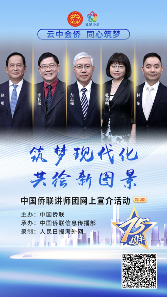 9月30日,以“筑夢現代化 共繪新圖景”為主題的中國僑聯講師團(第十二期)網上宣介視頻正式上線。視頻旨在深入學習貫徹習近平新時代中國特色社會主義思想和黨的二十屆三中全會精神,在慶祝新中國成立75周年之際,向海外僑胞和歸僑僑眷宣講新中國成立以來的光輝歷程和偉大成就,特別是黨的十八大以來取得的歷史性成就、發生的歷史性變革,展望以中國式現代化推進強國建設的光明前景,反映僑界群眾投身新中國建設和改革開放的貢獻。