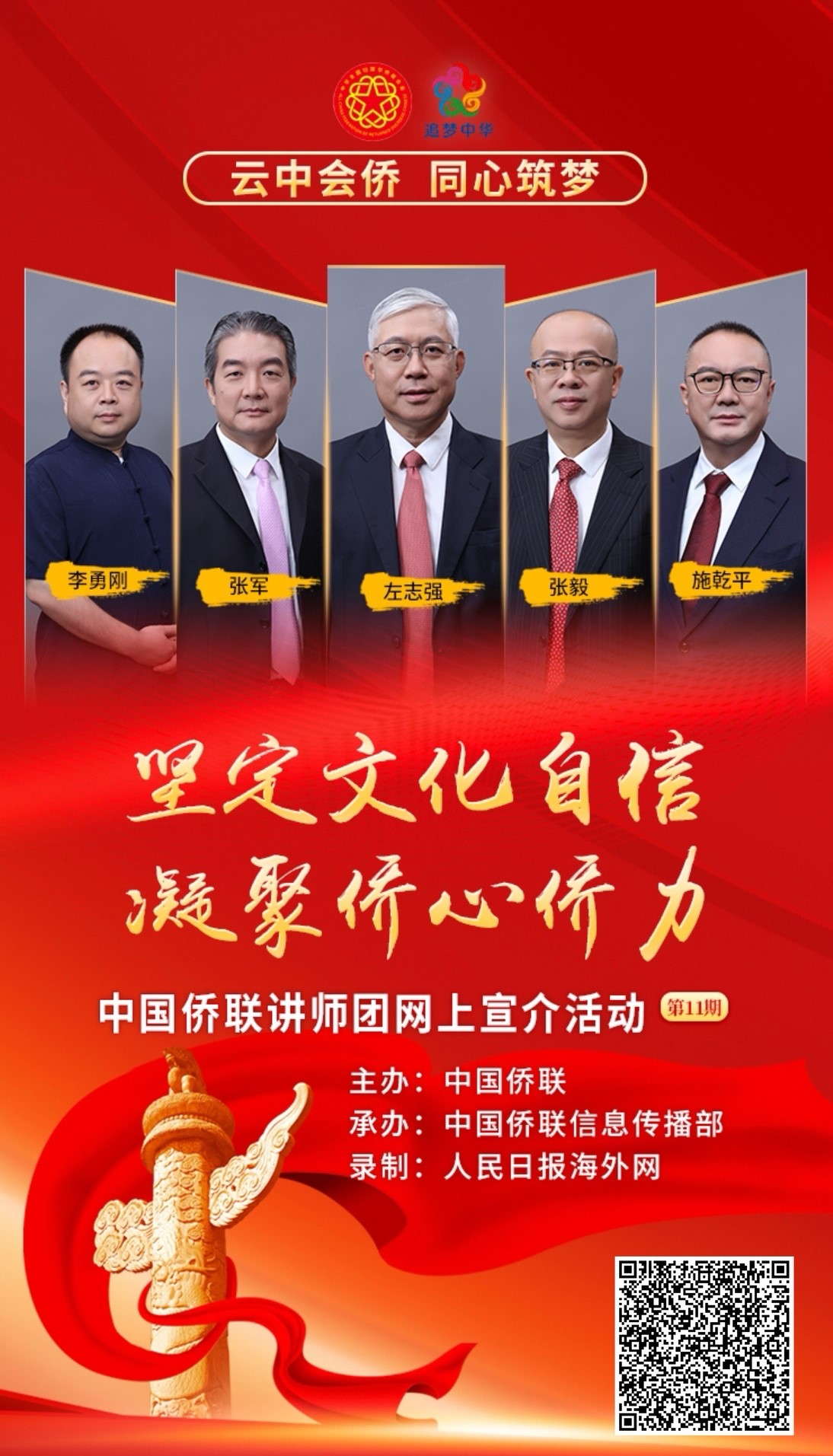11月8日,以“堅定文化自信 凝聚僑心僑力”為主題的中國僑聯(lián)講師團(第十一期)網(wǎng)上宣介視頻正式上線。視頻旨在深入學(xué)習(xí)貫徹習(xí)近平文化思想,錨定建成文化強國的戰(zhàn)略目標,堅定文化自信,不斷發(fā)展新時代中國特色社會主義文化,不斷提升中華文化影響力,筑牢強國建設(shè)、民族復(fù)興的文化根基,激勵僑界群眾在奮進新征程中作出新貢獻。