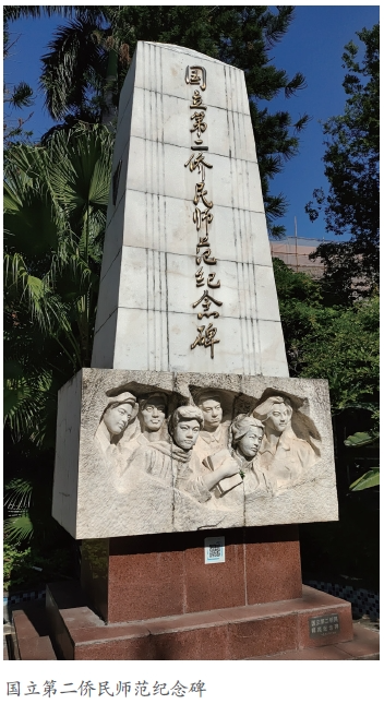 國立第二僑民師范紀念碑碑座雕刻了在抗日戰(zhàn)爭和解放戰(zhàn)爭中犧牲的六位革命烈士:蘇丹、李潔容、吳其占、陳恒光、莊棧賢、肖開倫,他們大多犧牲在雙十年華。