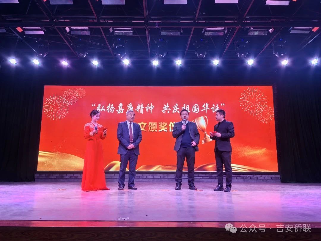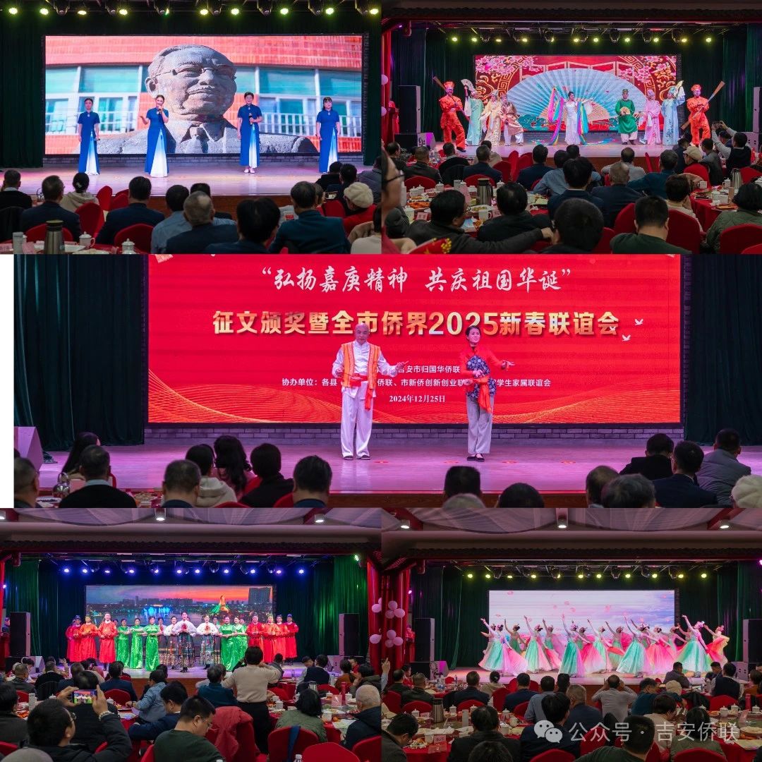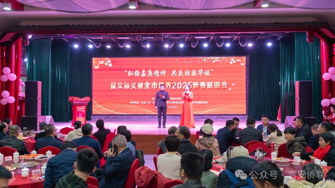 12月25日,“弘揚嘉庚精神 共慶祖國華誕”征文頒獎暨吉安市僑界2025新春聯(lián)誼會成功舉辦,省僑聯(lián)黨組成員、副主席郭子新,省僑聯(lián)兼職副主席、省僑創(chuàng)聯(lián)盟理事長吳世偉,省僑聯(lián)兼職副主席李忻農(nóng),市委副秘書長張菊明,市僑聯(lián)黨組書記、主席胡紅英等出席并為獲獎?wù)吆途栀浾哳C發(fā)榮譽證書(獎牌)。省僑聯(lián)有關(guān)部室負責人,市直各涉僑單位、市監(jiān)委駐市委宣傳部紀檢監(jiān)察組負責同志到會指導(dǎo),美國加州江西商會會長李京文等海外僑團僑領(lǐng)代表,市僑聯(lián)名譽主席、名譽顧問代表應(yīng)邀出席,市僑聯(lián)班子成員,市僑聯(lián)法顧委、市留屬會班子成員,市新僑創(chuàng)新創(chuàng)業(yè)聯(lián)盟全體成員及井岡山經(jīng)開區(qū)、各縣(市、區(qū))、廬陵新區(qū)僑聯(lián)主要負責人及僑界群眾代表共計300余人參加活動。