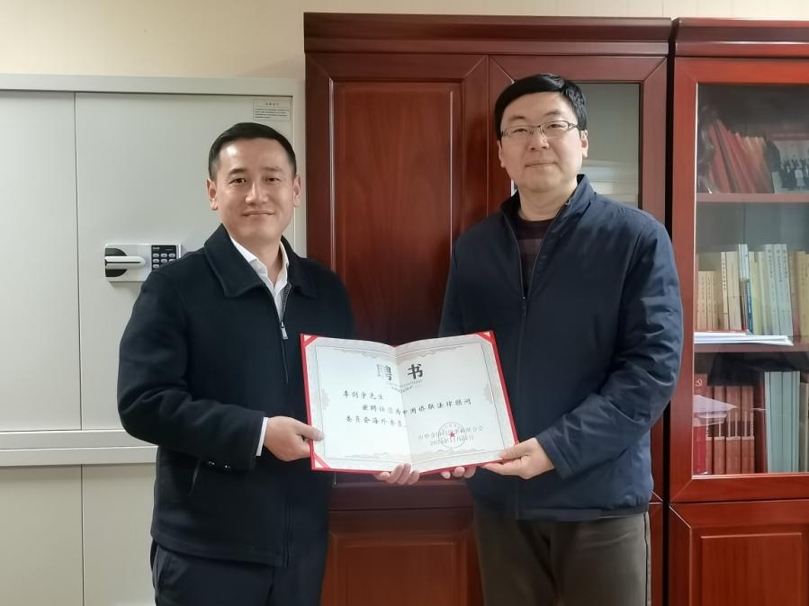 徐友佳代表中國僑聯領導為李劍宇律師頒發了聘書,并對其到訪表示熱烈歡迎。他提到,法顧委海外委員在為海外僑胞提供法律服務、服務共建“一帶一路”、助力中國企業“走出去”、傳播中國法治文化等方面作出了積極貢獻,希望李律師作為新聘法顧委海外委員,積極發揮獨特作用,為海外僑胞和中資企業提供法律服務,切實為中國企業和公民在共建“一帶一路”國家的安全和發展保駕護航。