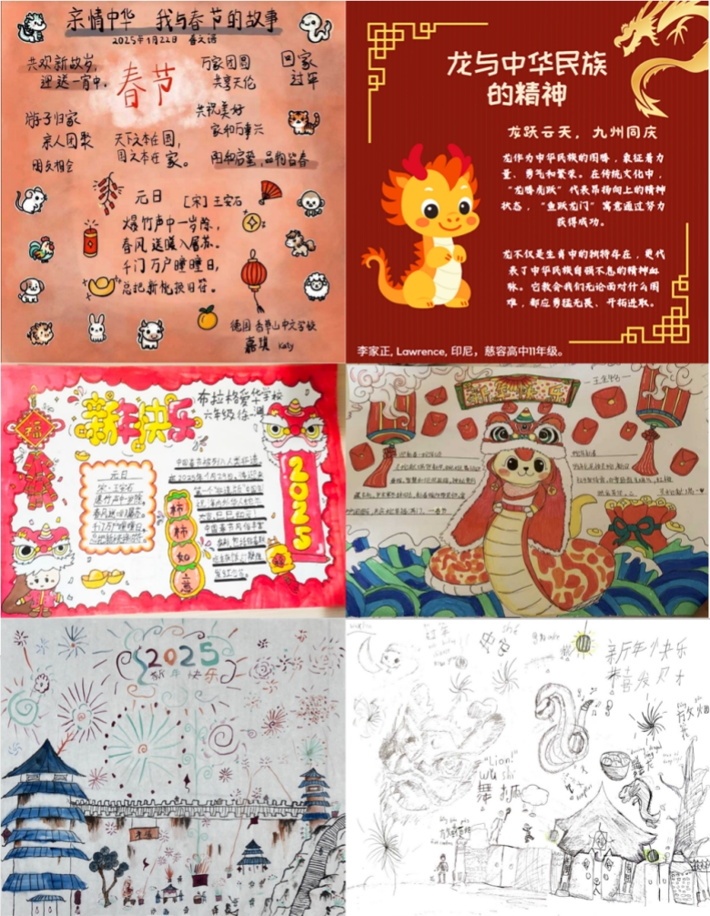 在第一課中,華裔青少年們學習了中國國家主席習近平關(guān)于春節(jié)的重要講話內(nèi)容摘編,對春節(jié)的起源、習俗以及生肖典故所蘊含的文化內(nèi)涵和民族精神有了更加深刻的了解。課后,同學們紛紛結(jié)合自己的理解與感悟,創(chuàng)作并提交了豐富多彩的作品。