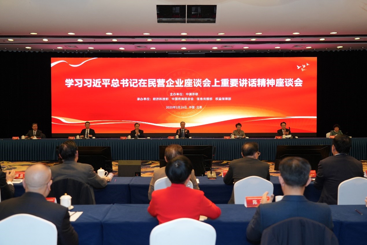 2月26日,中國僑聯召開學習習近平總書記在民營企業座談會上的重要講話精神座談會。黨組書記、主席萬立駿出席會議并講話,副主席程紅主持會議,黨組成員、副主席程學源、連小敏,副主席高峰出席座談會。中國僑商聯合會會員單位代表、中國僑聯法律顧問委員會委員近60人參加會議。
