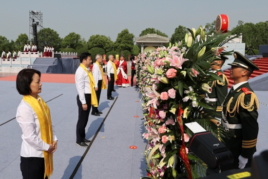 5月23日,由國務(wù)院臺(tái)灣事務(wù)辦公室、中國文學(xué)藝術(shù)界聯(lián)合會(huì)、中華全國歸國華僑聯(lián)合會(huì)、中華炎黃文化研究會(huì)、湖北省人民政府等單位共同主辦的乙巳年世界華人炎帝故里尋根節(jié)暨拜謁炎帝神農(nóng)大典在湖北隨州隆重舉行,中國僑聯(lián)文化交流部副部長車壯麗參加大典,并代表主辦方敬獻(xiàn)花籃。