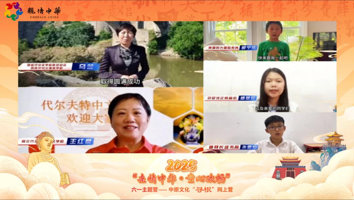 本次六一主題營將于5月28日至6月1日通過中國僑聯官網、活動微信群等渠道發布“黃河之畔·古都密碼”“黃河之源·姓氏尋根”“黃河之光·詩韻長存”“黃河之頌·歌聲飛揚”“黃河之魂·豫見未來”五大主題課程的線上課程入口和課程回放資源,引導華裔青少年探尋中華文明起源,厚植家國情懷。