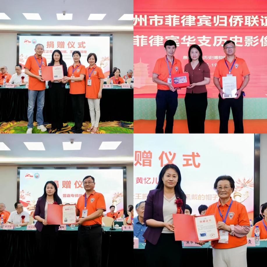 2025年5月19日,“紀念抗日戰爭勝利80周年暨菲律賓華僑抗日游擊支隊成立83周年”主題活動在泉州華僑大廈隆重舉行,中國華僑歷史博物館副館長雷霆出席活動,代表僑博接受北京菲律賓歸僑聯誼會等捐贈團體和個人捐贈的17件/套菲律賓華僑支持世界反法西斯戰爭的相關實物資料,并向各捐贈代表頒發捐贈證書。