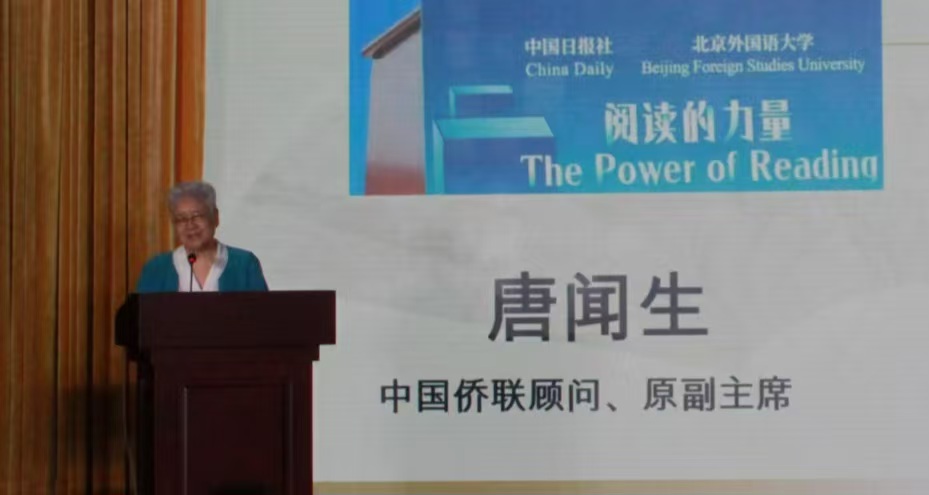 中國僑聯顧問、原副主席唐聞生結合自己的成長和工作經歷,分享了讀書、閱讀的感悟和收獲。她說,知識浩如煙海,讀書是積累知識的最好途徑之一,是提升個人素質的基礎。當今社會飛速發展,新技術新知識日新月異。僑聯工作者在面對新僑情新事物時,也面臨著許多新挑戰新困難,唯有不斷讀書學習,才能開拓視野,克服本領恐慌,創造性地開展工作。她希望僑聯干部能憑借閱讀的力量,汲取知識海洋中的養分,為砥礪奮進中的祖國添磚加瓦。