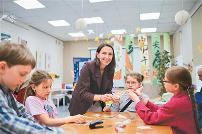 圖為活動(dòng)現(xiàn)場(chǎng),俄羅斯?jié)h學(xué)家齊緣教授與孩子們一起做手工。活動(dòng)主辦方供圖 |