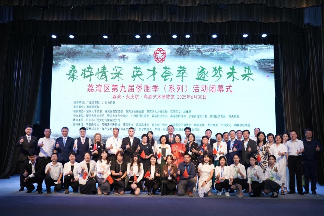 2025年6月30日,荔灣區第九屆僑胞季(系列)活動及閉幕式在粵劇藝術博物館盛大舉行。本次活動以“桑梓情深 英才薈萃 逐夢未來”為主題,由廣東僑青聯、廣州市僑聯指導,荔灣區僑聯精心策劃主辦,聯合暨南大學及荔灣區委宣傳部、區委統戰部、區人力社保局、區文廣旅體局,通過文化游園、主題宣講、項目簽約等一系列活動,全景式展現荔灣千年僑鄉底蘊與新時代僑界擔當。海外僑領、僑商代表及各界嘉賓 200 余人共赴這場融合文化傳承、經貿合作與民生服務的僑界盛會。當天上午,就在同一會場,廣州市荔灣區第十一次歸僑僑眷代表大會圓滿完成各項議程,勝利閉幕。