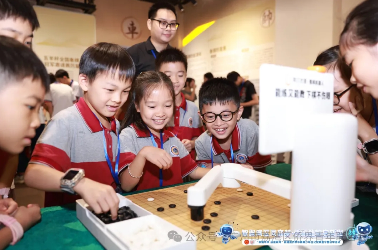 科普屬性貫穿全程:從圍棋AI 課堂解析“生成式 AI 如何賦能棋類教育”,到象棋智能對弈中體驗“AI 戰(zhàn)術(shù)分析系統(tǒng)”,再到“五羊杯”賽事專題課中了解“大數(shù)據(jù)如何助力棋手復(fù)盤提升”,青少年們深刻體會到“高質(zhì)生產(chǎn)力推動文化傳承”的生動內(nèi)涵。在人工智能對弈體驗區(qū),同學(xué)們分組使用隱智智能圍棋棋盤、小聯(lián)貓象棋機(jī)器人、阿爾法蛋等“黑科技”,與AI智能展開較量。在一次次交鋒中,實(shí)時感受 AI 對弈中的精準(zhǔn)計算與策略預(yù)判,直觀理解“數(shù)據(jù)如何成為棋力”,更觸摸到了人工智能時代的脈搏—— 正是AI技術(shù)的不斷發(fā)展,幫助人類進(jìn)一步探索圍棋的奧妙,解鎖其更深層次的魅力。