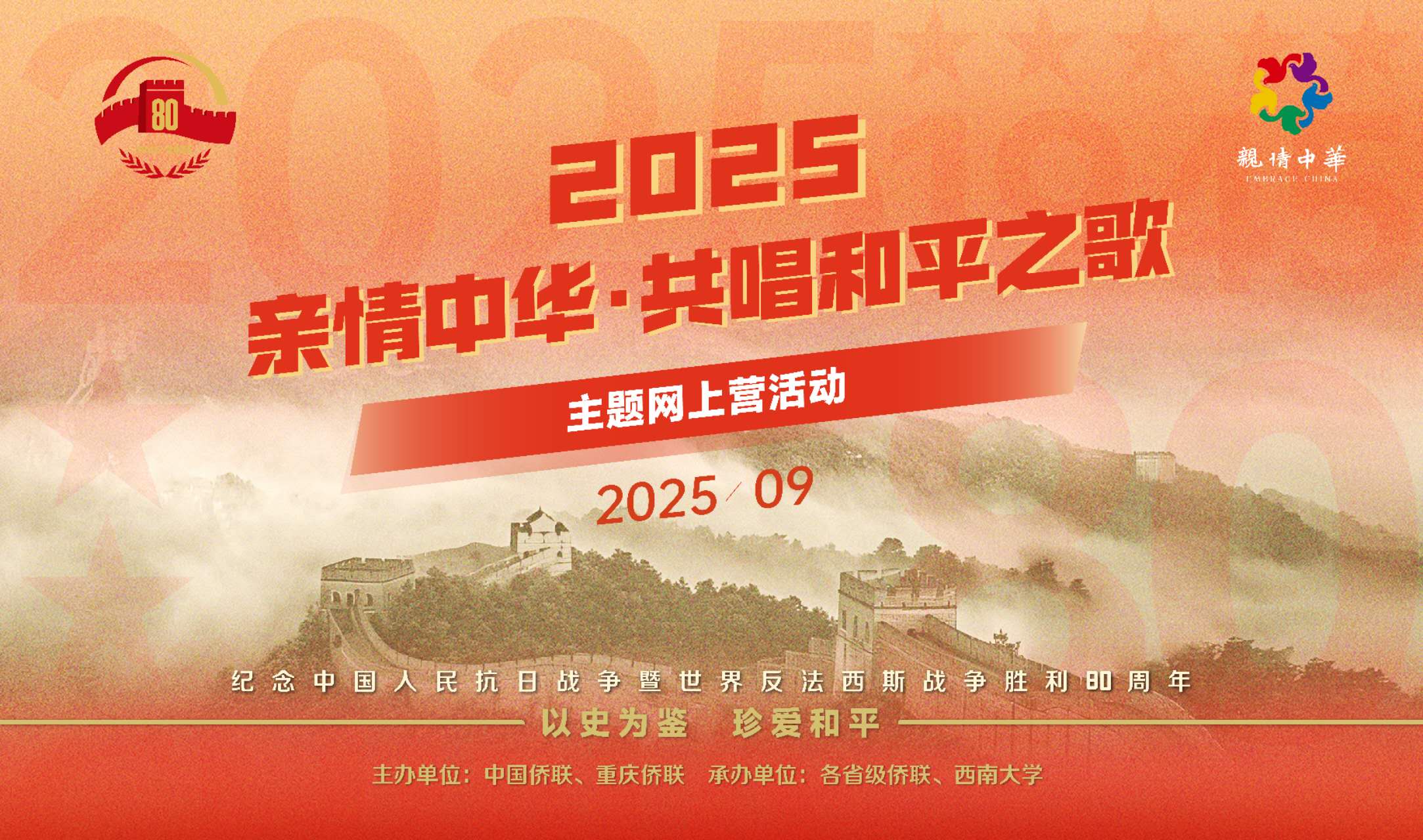 9月1日,由中國僑聯(lián)、重慶市僑聯(lián)共同主辦的2025“親情中華·共唱和平之歌”紀(jì)念中國人民抗日戰(zhàn)爭暨世界反法西斯戰(zhàn)爭勝利80周年主題網(wǎng)上營活動在北京舉行開營儀式。中國僑聯(lián)副主席程紅出席開營式并講話。重慶市僑聯(lián)黨組書記、主席孟衛(wèi)紅,西南大學(xué)黨委常委、副校長白顯良出席活動并致辭。開營儀式由中國僑聯(lián)文化交流部副部長郭啟華主持。