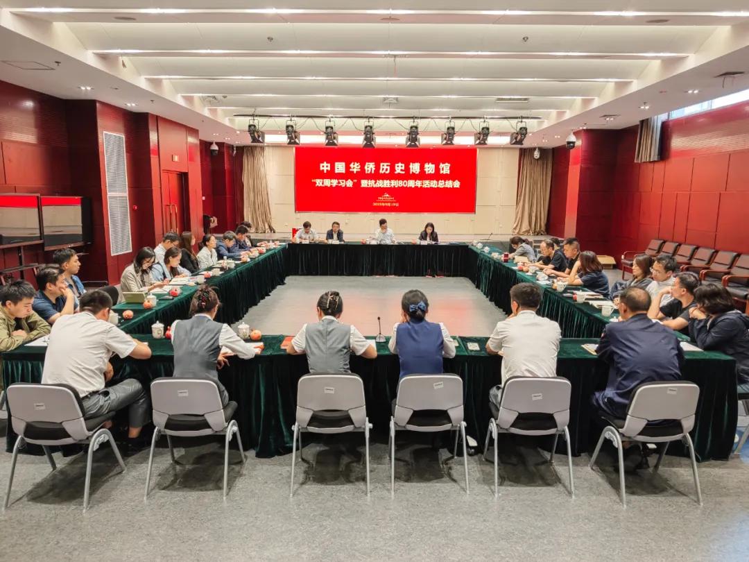 9月19日下午,中國華僑歷史博物館召開抗戰勝利80周年活動總結會,全面回顧并系統梳理了僑博圍繞紀念中國人民抗日戰爭暨世界反法西斯戰爭勝利80周年開展的系列工作,總結經驗,凝聚奮進力量。會議由副館長(主持工作)寧一主持,副館長雷霆和全館干部、物業項目部代表參加。