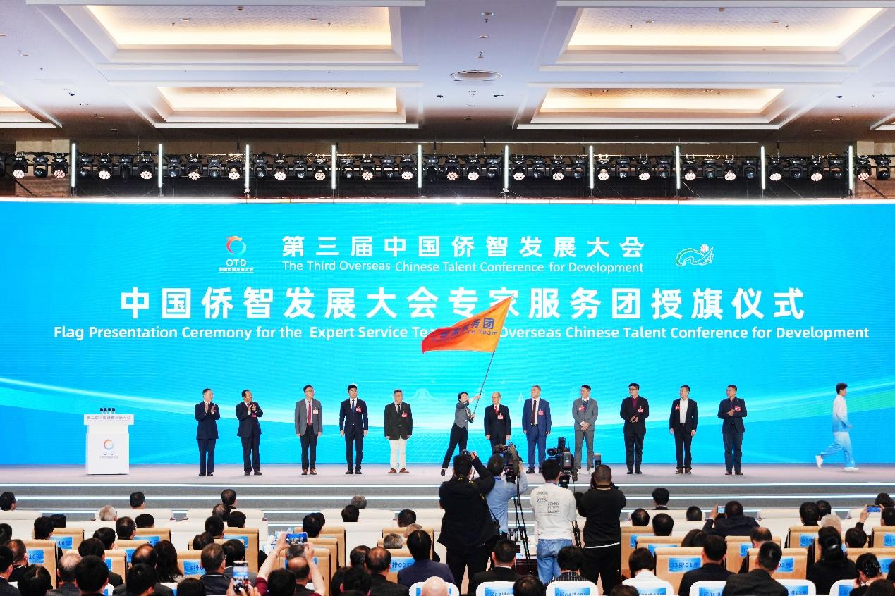 開幕式上,中國僑聯副主席程紅為“中國僑智發展大會專家服務團”授旗。