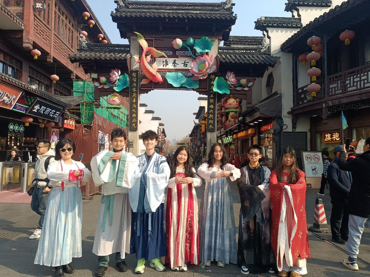 活動巧妙平衡歷史傳承與現代體驗,讓營員們全方位感知中國發展活力。在南京市中醫院,營員們了解“治未病”的傳統健康哲學,親身體驗中醫診療技藝,感受中華醫學的智慧結晶;乘坐“長江傳奇號”沿江而行,在濱江風光中觸摸長江文化的時代脈搏,體會古都南京“古今交融”的城市特質;中華門城堡的“尋姓氏”活動,讓營員們在城墻之上追溯家族根源,強化“血脈相連”的文化認同......